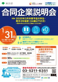 | 参加対象 | ・2020年3月卒業予定の学生 ※各企業の応募条件は東京しごとセンター3階ヤングコーナー内「業界職種・企業ラボ」にてご確認ください。 |