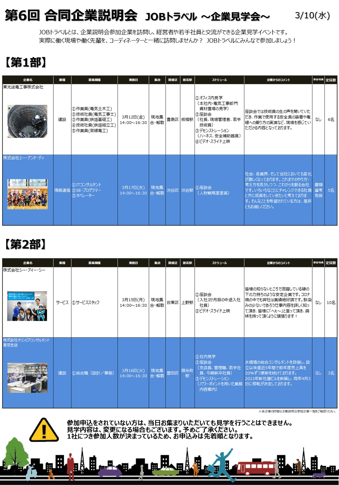 タイトル JOBトラベル <3/10開催 合同企業説明会 出展企業への訪問・見学会>