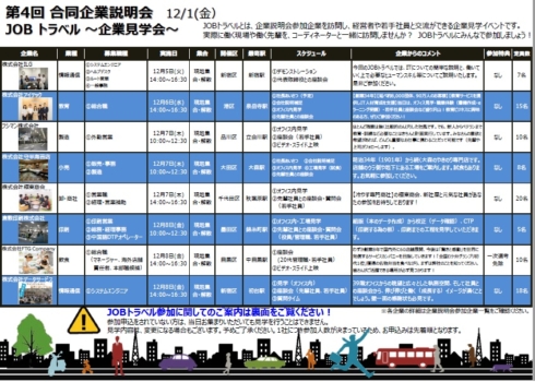 | タイトル | JOBトラベル 第4回合同企業説明会~新卒・既卒3年以内対象~参加者向け |