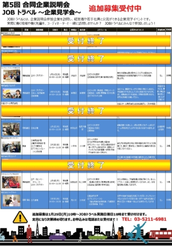 | タイトル | JOBトラベル <第5回合同企業説明会 出展企業への訪問・見学会> |